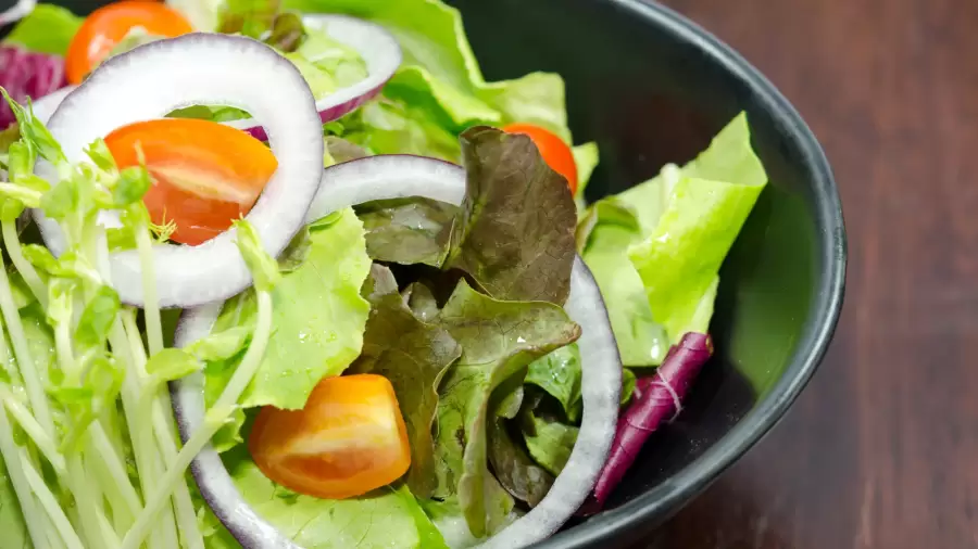 Makan Siang: Salad ayam panggang dengan sayuran dan dressing tanpa gula.